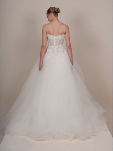 Specials: Tulle Sweetheart Neckline with Spaghetti Straps and Illusion Boned Bodice with Beaded Accents and Draped Skirt with Chapel Train