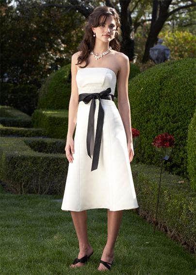 Ivory Strapless Tea-length Satin Lace Sashes Bridesmaid Dress (BOTS0418)