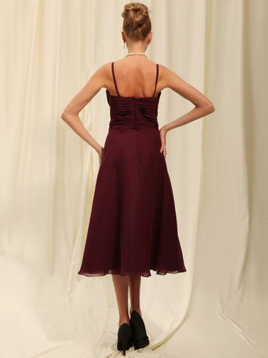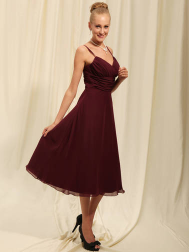 • New Style Chocolate Tea Length Chiffon  Customer-Made Bridesmaid Dress (BMD-160)