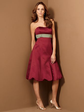 Strapless Cocktail Length Satin Chiffon Bridesmaid Dresses (KB0018)