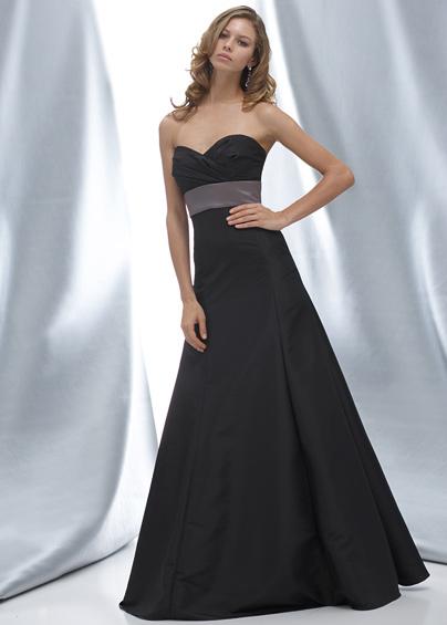 Black sculpted strapless luminescent taffeta dress with slate sash at empire.