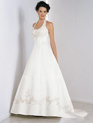 A-line Halter Chapel Train Satin Wedding Dresses (SV0217)