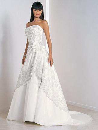 A-line Strapless Chapel Train Lace Satin Wedding Dresses (SV0143)