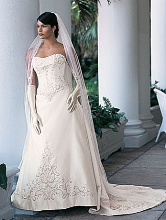 Our fashion style of wedding dress combines all the essence of the traditional beauty and combines the extraordinary modern elements. Fancy silhouette with charming elements creates a fantastic look. Sumptuous wedding dresses appreciate soft neckline dotted with glittering embroidery and beaded motifs over the pleated bodice. Natural waistline reveals the full skirt running down to the floor with a graceful chapel train.