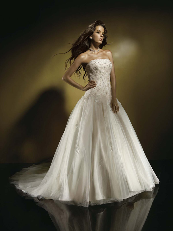 A-line Strapless Chapel Train Tulle Wedding Dresses (ms0183)