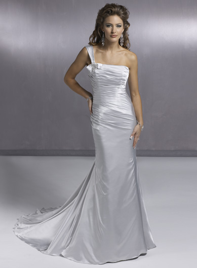 Sheath One-shoulder Neckline Satin Wedding Dresses (wd0011)