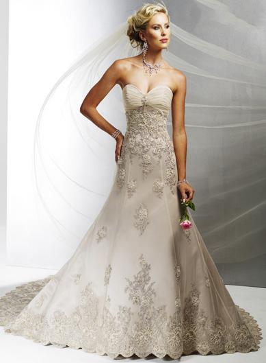 Our fashion style of wedding dress combines all the essence of the traditional beauty and combines the extraordinary modern elements. Fancy silhouette with charming elements creates a fantastic look. Sumptuous wedding dresses appreciate soft neckline dotted with glittering embroidery and beaded motifs over the pleated bodice. Natural waistline reveals the full skirt running down to the floor with a graceful chapel train.