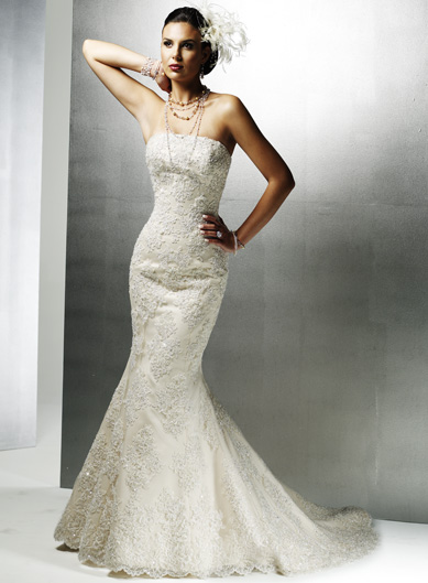 Strapless Sweep Train Lace Wedding Dresses (wd0458)