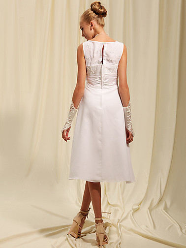 • Classic Jewel Neckline Ankle Length Tightly Pleated Bridesmaid Dress