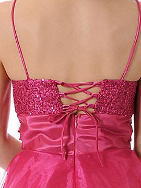 Enticing Fuchsia Spaghetti Straps sequin fashion design organza Cocktail Dress