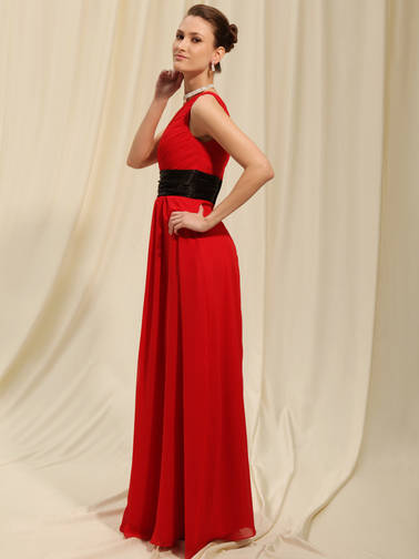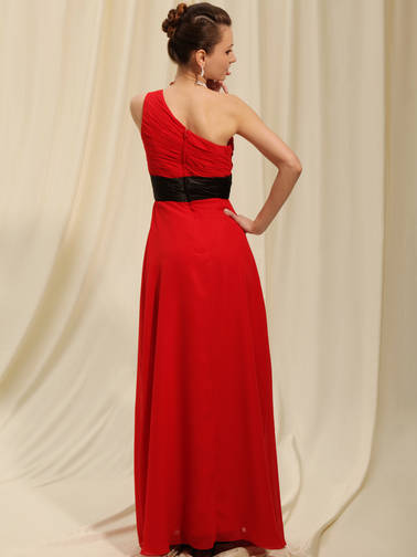 • Red With One Shoulder Dropped With A Pleated Waist Bridesmaid Dress