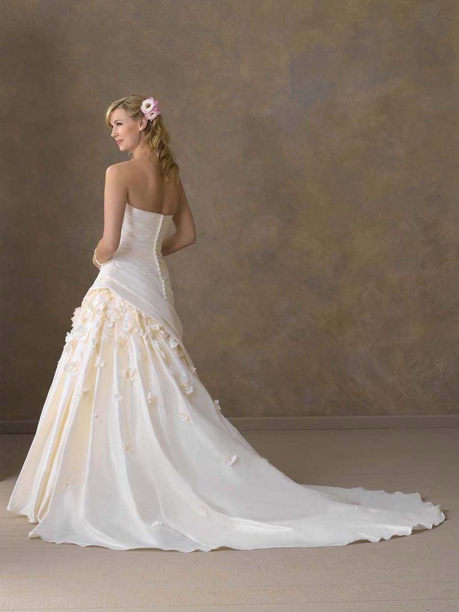 • Comfy Floor Length A-Line Strapless Low Back Sweep Train With Applique,Button Wedding Dresses WDresses01017