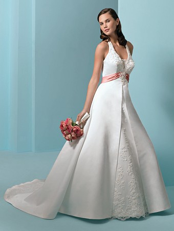 Our fashion style of wedding dress combines all the essence of the traditional beauty and combines the extraordinary modern elements. Fancy silhouette with charming elements creates a fantastic look. Sumptuous wedding dresses appreciate soft neckline dotted with glittering embroidery and beaded motifs over the pleated bodice. Natural waistline reveals the full skirt running down to the floor with a graceful chapel train.