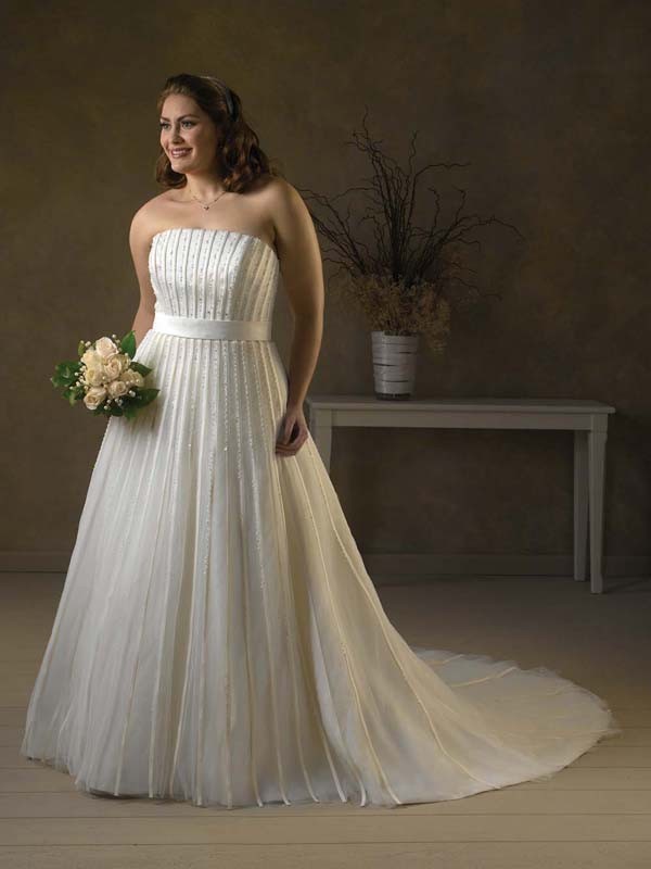 • Elegant Floor Length A Line Strapless Zipper Sweep/Brush Train With Sash Wedding Dresses