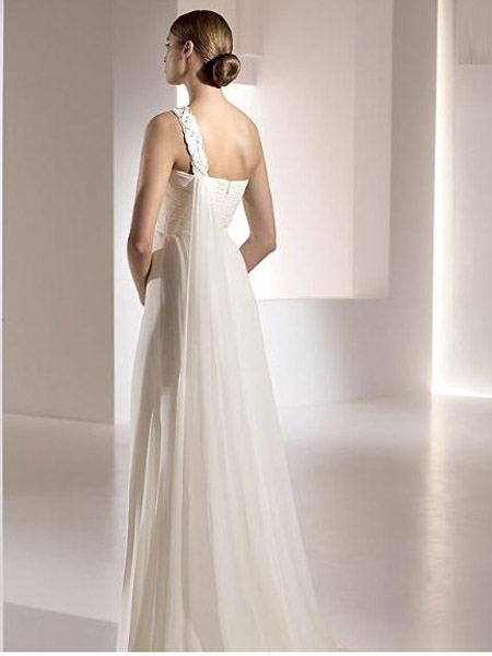 One Beaded Strap Sweetheart Empire waist Pleated Chiffon Floor length Modest Bargain Beach Wedding Dress 2011