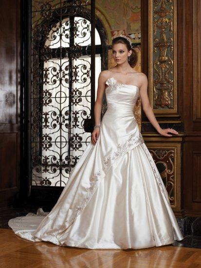 Strapless Beading Satin Corset Wedding Dress ,enhanced by Crystals ,Lace up back and Cathedral Train .