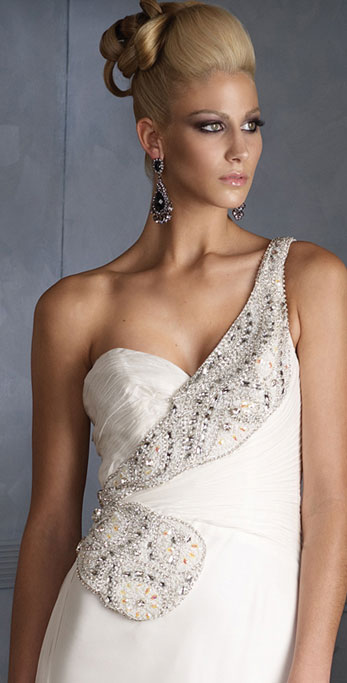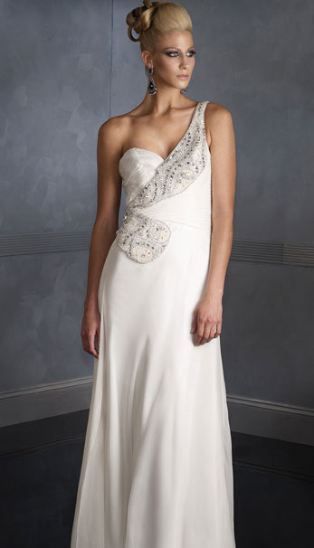 • A Chiffon Floor Length With One Beading Shoulder Formal Evening Dress