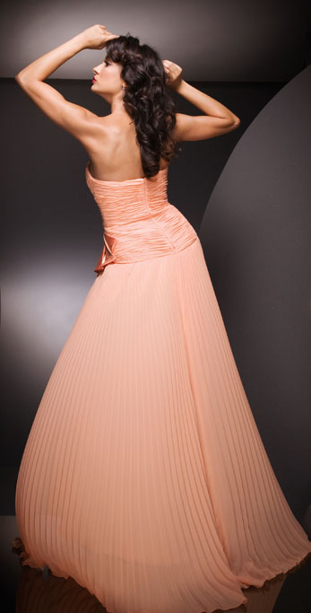 • A Complicated With A V Neckline Dropped And Pleated With A Kont Formal Evening Dress
