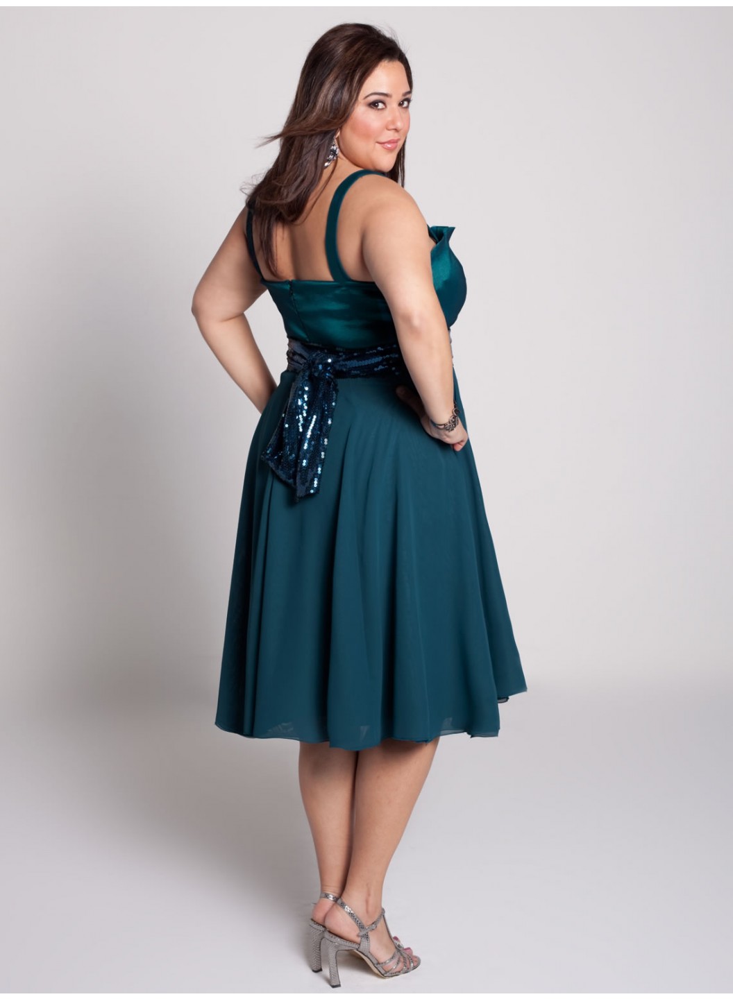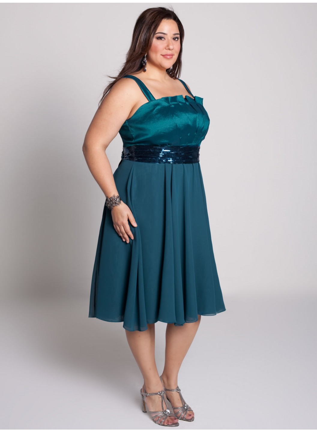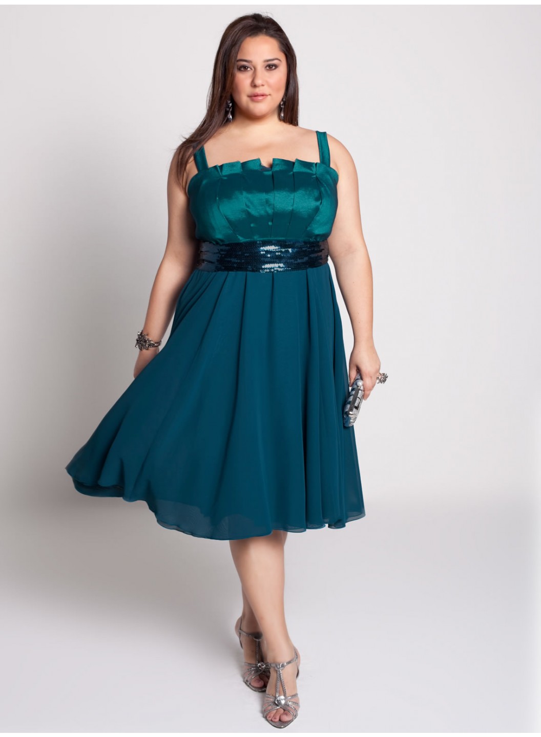 Care: Dry Clean OnlyExpertly pleated crumb-catcher bodice that can be worn with straps or straplessEmpire waist, very full, double chiffon layer mid-knee length skirtBack zipper, hook and eye, and fully linedBelt included
