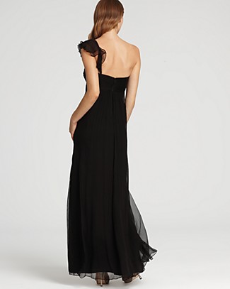 • Amsale Ruffle-Front One-Shoulder Gown