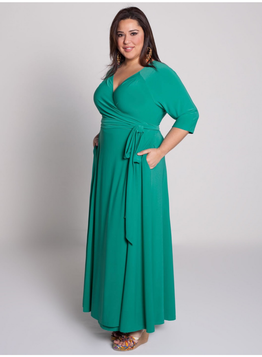 Care: Hand Wash in Cold Water or Dry Clean Surplice bodice is shaped by pleatsRaglan 3/4 length sleevesSet-in waistband can be adjustedTrue wrap-around silhouetteA-line flared skirtSide seam pockets