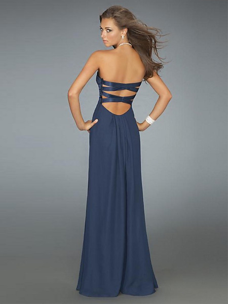 This kind of chiffon floor length evening dress features its strapless tube top design. The similarity of photograph is 97% probablay. This dress is available in other colors.