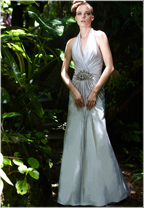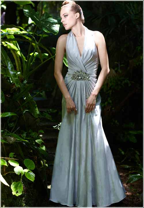 Be divine, be sensual, be modern - this bridal gown has it all with a halter strap to provide extra support. In a style reminiscent of Marilyn Monroe, the dress falls elegantly to skim the floor. A jeweled accent rests at the waist. Curves ahead! Available in white.