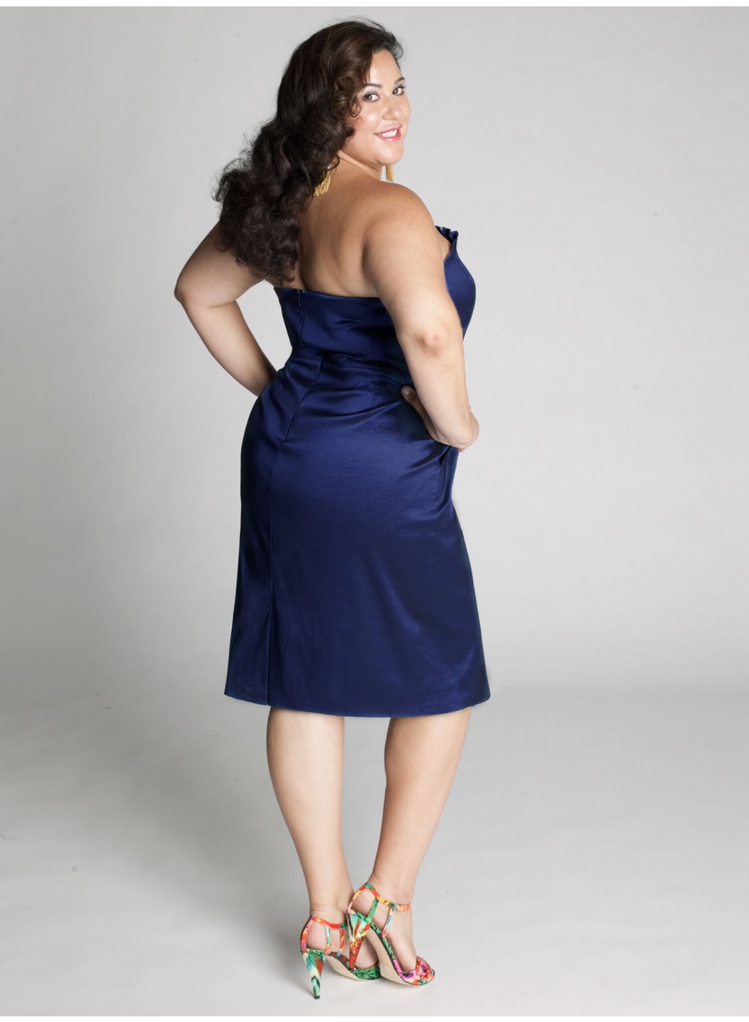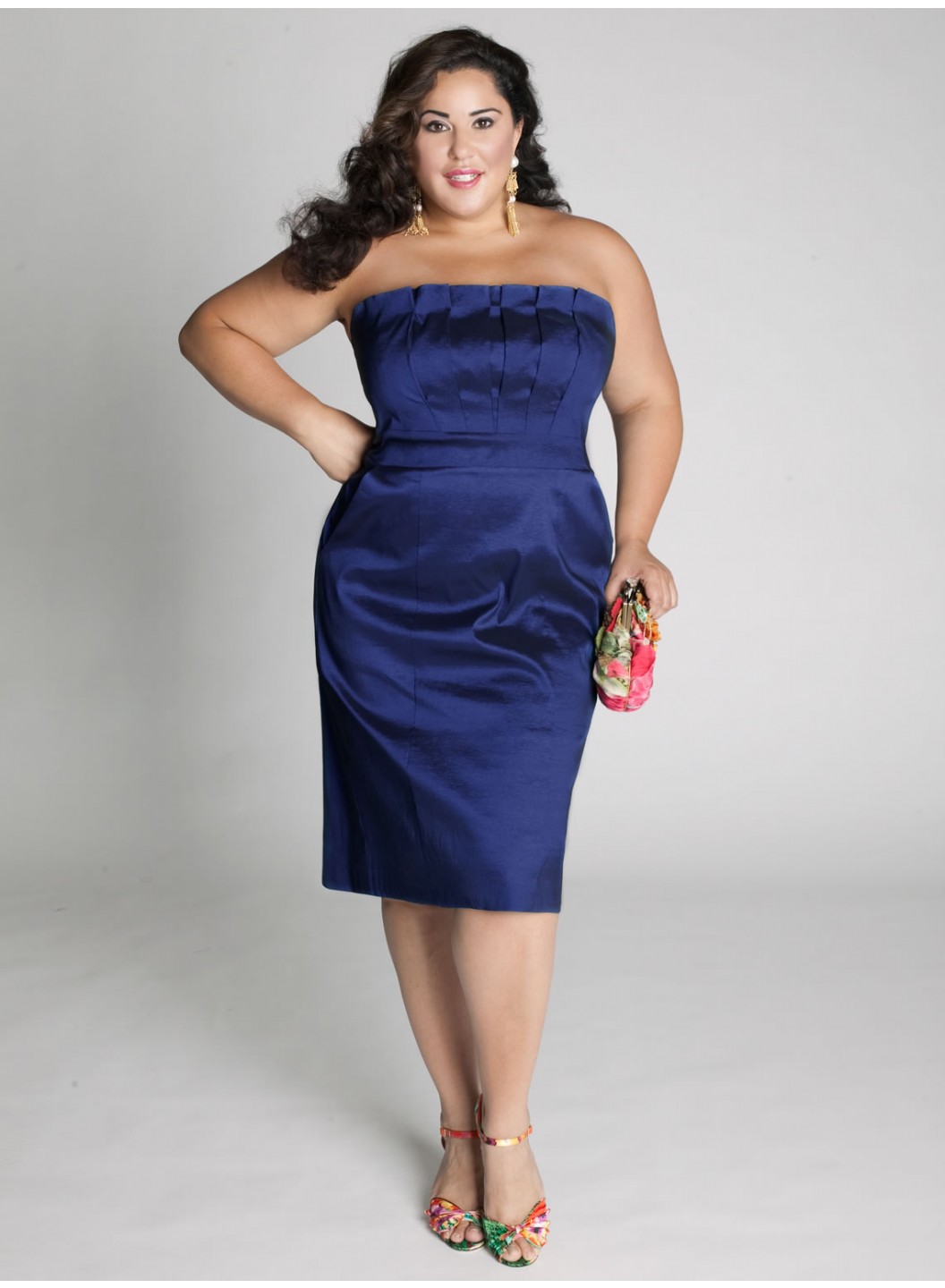 Care: Dry Clean OnlyOrigami pleated bodice with detachable strapsHigh waist straight skirt hits at the kneeSkirt is shaped with princess seamsFully lined with back zipperShoulder to Hem Length: 42"-45"