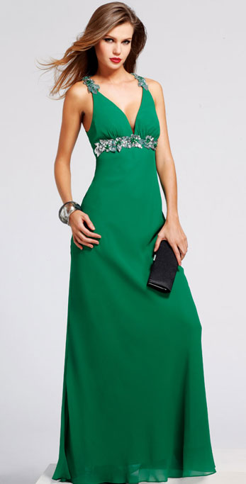 • Elegant Deep V Neckline With Appliques Shoulders Long Evening / Bridesmaid Dress