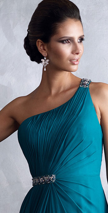 • Elegant One Beading Shoulder Side Ruched Detailed Formal Evening Dress With A Gown