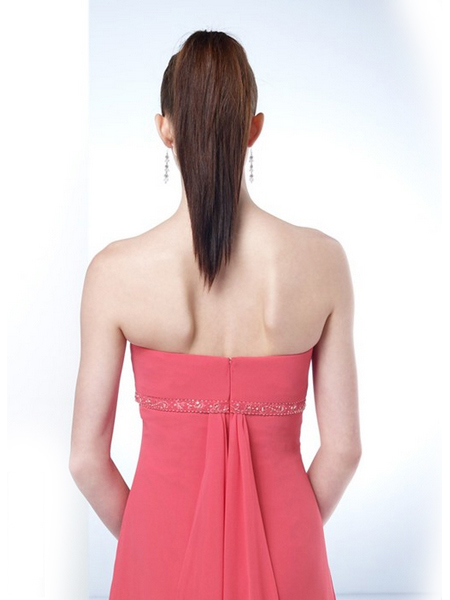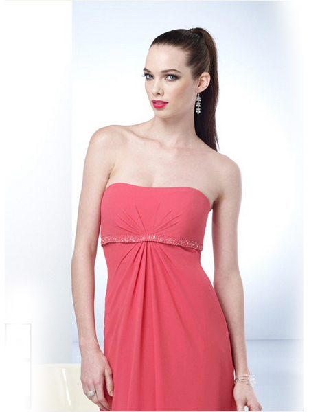 A classy dress with elegant design and cut. The colour of this chiffon evning gown itself is so attractive that it will complement girls of any complexion. The strapless neckline along with banded empire waist design looks perfect in it. Sweep train finishe the look of this empire evening dress. You can feel the soft chiffon kissing your body when you wearing it.