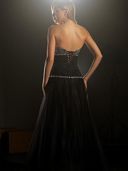 Empire waist Discount Floor Length Black Strapless Sweetheart jewel a line Evening Dress