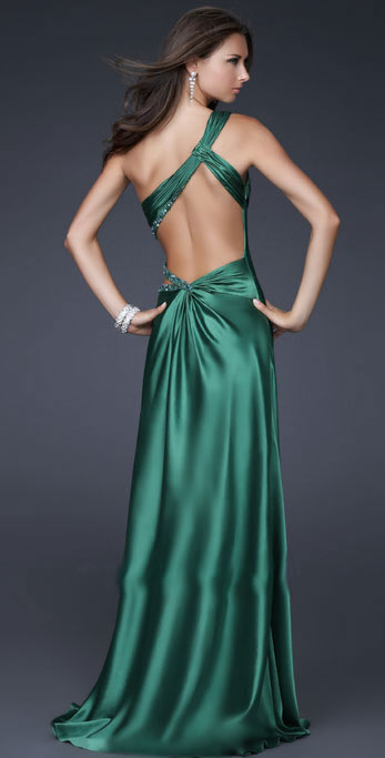 • Fashion One Draped Shoulder With Pearls Furcation Evening Dress