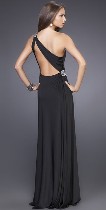 • Furcation One Shoulder Dropped Floor Length Side Ruched With Beadings plicated Evening Dress