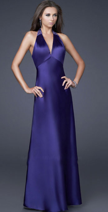 • Gracious Ball Gown With Beading Halter V neckline Long Evening Dress