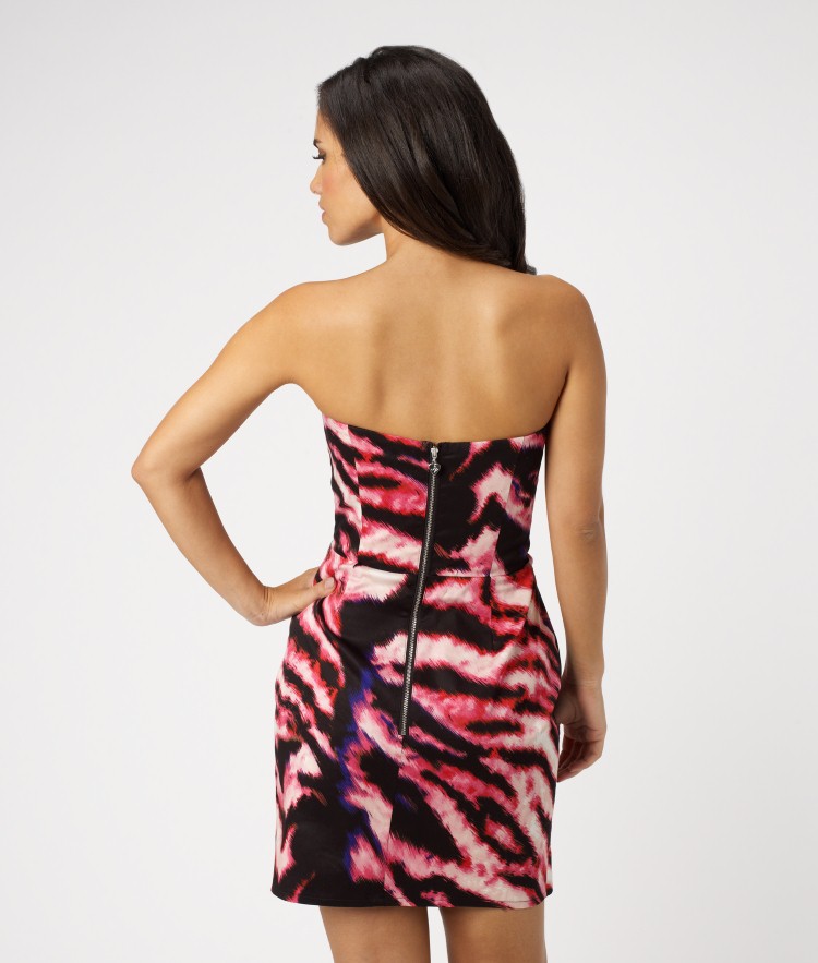 You'll be sure to stand out from the crowd in this gorgeous bandeau dress. The vibrant print is fun and flirty, and the ruched detailing gives a perfect fit. With embellishment to the waist to add that Lipsy sparkle. Wearing length 86cm