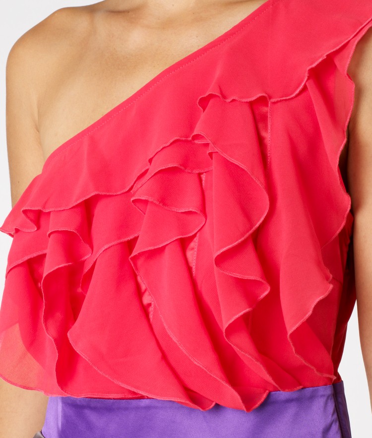 Get with the colour blocking trend in this one shoulder party dress, featuring a frill front, contrast waistband and skirt. Wearing length 86cm. 100% Polyester, lining 96% Polyester 4% Elastane