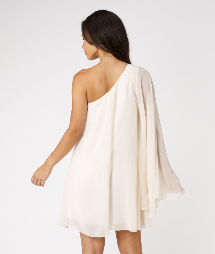 Steal the show in this stunning one shoulder dress. With a delicate drape sleeve to add drama to your outfit and embellishment around the neck, get ready to dazzle on any night out. Wearing length 86cm