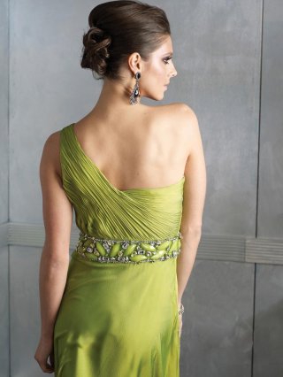 This evening dress is so elegant. The same diamond will adds the nobleness which decorated on the neckline ,the waist and the cross strap on back. Gathers corsage and cut-out back strap design accenting the chic statement.