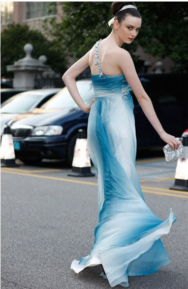 One shoulder beaded strap