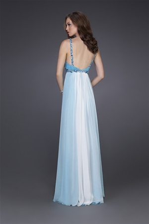 Everyone will admire you when you enter elegant events wearing the amazing ombre evening dress. This alluring dress is sure to be a favorite in your formal closet. Ample straps uphold the v-neck bodice with a sparkling band around your waist to show off your feminine hourglass figure. From the beaded empire waist come tiers of soft silk ruffles to make this skirt beautifully unique. The ruffles accentuated the ombre coloring of this gorgeous gown. When you spin around wearing the amazing ombre evening dress, the rear view shows off your bare upper back with two sparkling straps going down either side.