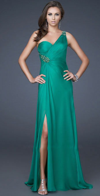 • One Side Shoulder And Sweetheart Neckline Long Evening Dress