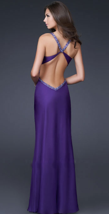• Purple Attractive Furcation Chiffon With Beading Halter Evening / Party Dress