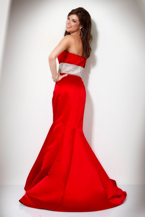 • Red Trumpet Strapless And Falt Neckline Evening Dress