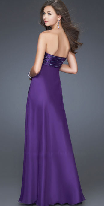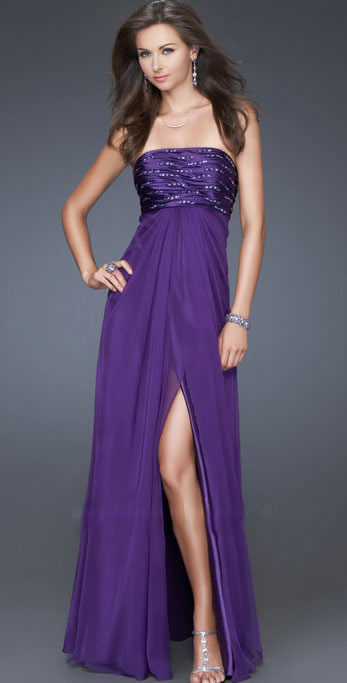 • Simple Chiffon Strapless Bateau Neckline Furcation Evening Dress