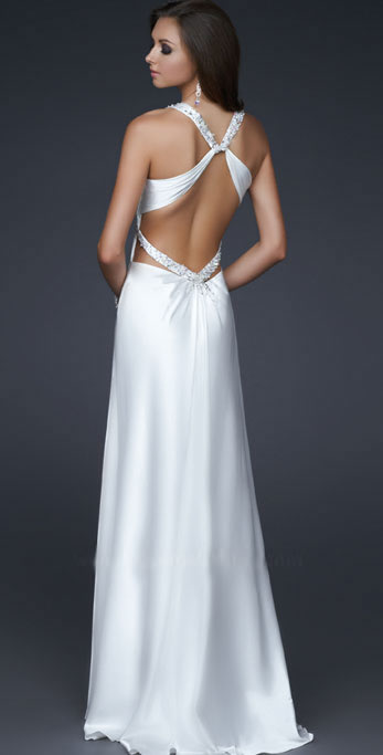 • Simple White Halter Evening Dress With Furcation Evening Dress