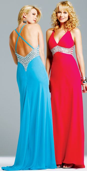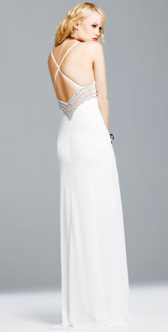• Spaghetti Straps Column With V Neckline Chiffon Evening Dress