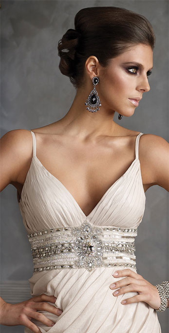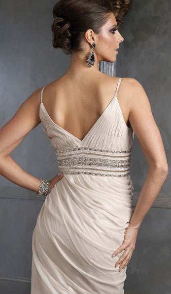 • Spaghetti Straps V Neckline Side Draped With Beading Waist Evening / Prom Dress