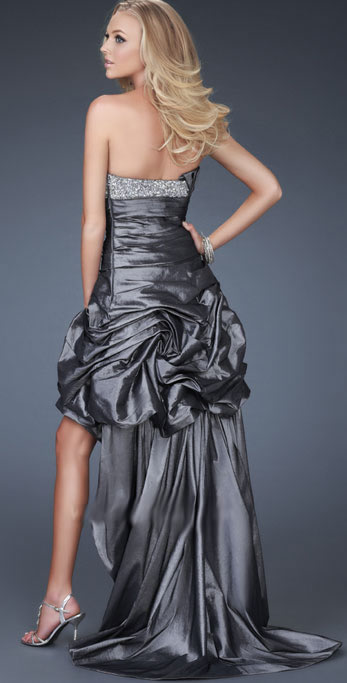 • Strapless Beading Scalloped-Edge Neckline With Side Draped And Ruched Ball Gown Cocktail Dress