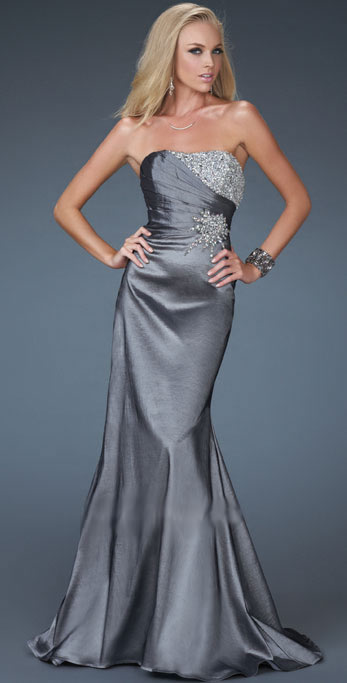 • Strapless Mermaid With Side Draped And Pleated Sequins Evening Dress